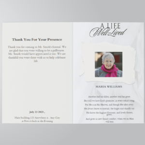 Funeral Pamphlet A funeral pamphlet, which is also known as a funeral program or order of service, is a printed…